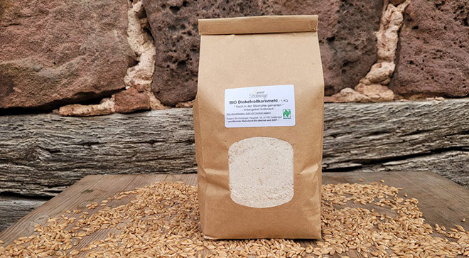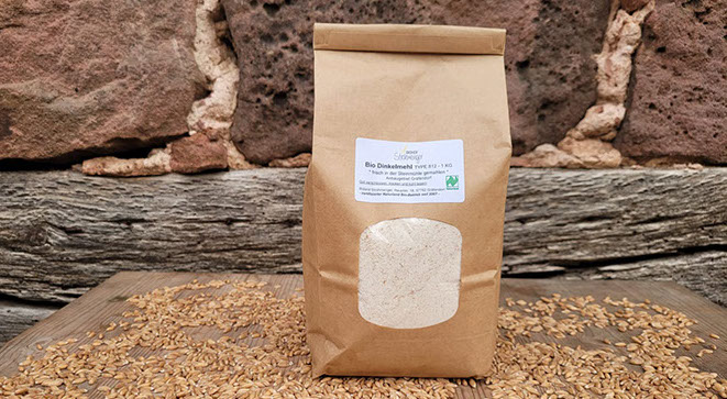 Unsere Bio-Dinkelvollkornmehl wird in der Hofeigenen Steinmühle frisch gemahlen, somit bleibt der gesunde Keimling enthalten und kommt anschließend völlig unbehandelt in die Tüte!