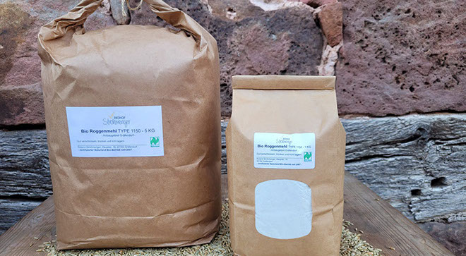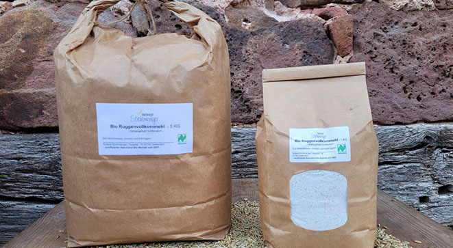 Unser Bio-Roggenvollkornmehl wird in unserer Hofeigenen Steinmühle frisch gemahlen, somit bleibt der gesunde Keimling enthalten und kommt anschließend völlig unbehandelt in die Tüte! Ideal zur Herstellung von Brot und Brötchen, und andere Backwaren.